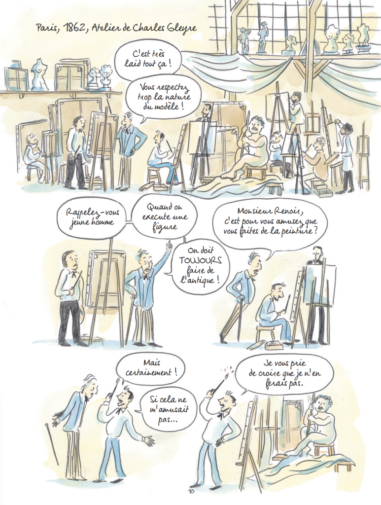 Réalisée à l’aquarelle, cette BD retrace le parcours de Monet : de ses débuts au Havre à sa reconnaissance internationale. Une immersion dans l’univers lumineux du père de l’impressionnisme, entre doutes, amours, amitiés… et quête inlassable pour capturer l’instant.